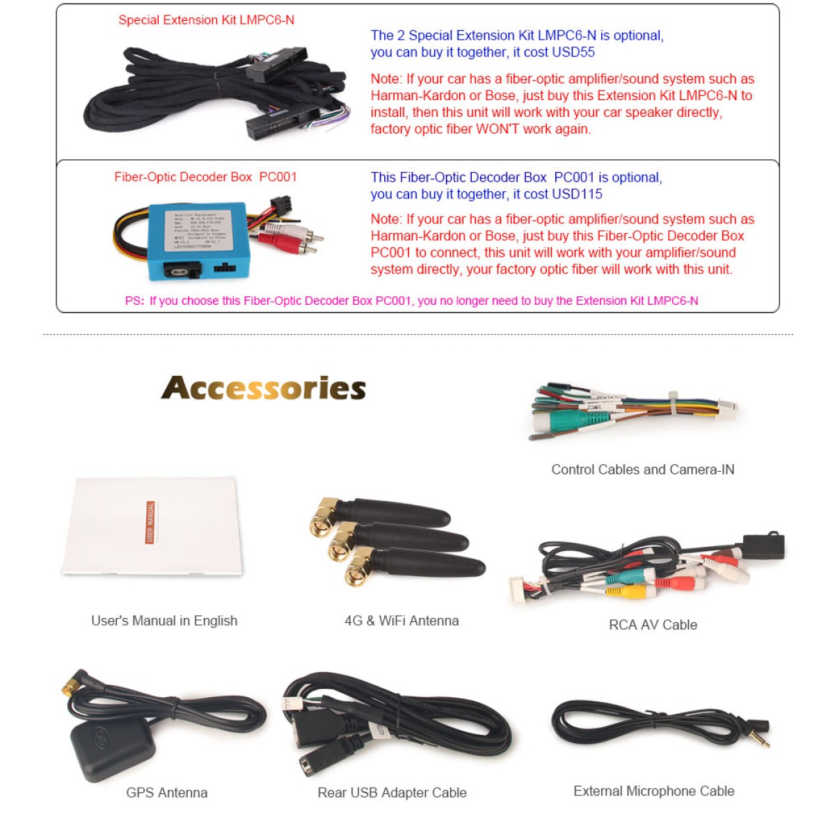 *Моля, имайте предвид, че ако автомобилът Ви е оборудван с фабричен усилвател (Bose,Harman&Kardon) или радиомодул в багажника, се налага закупуването на оптичен декодер или удължаването на букса и кабели от багажника до централната конзола.