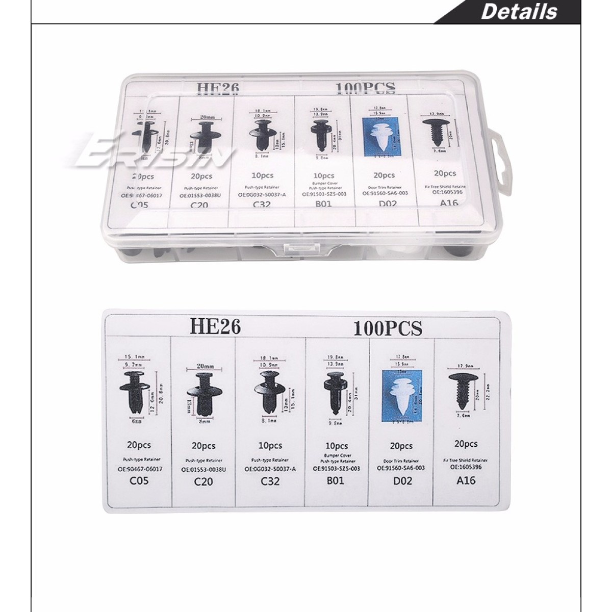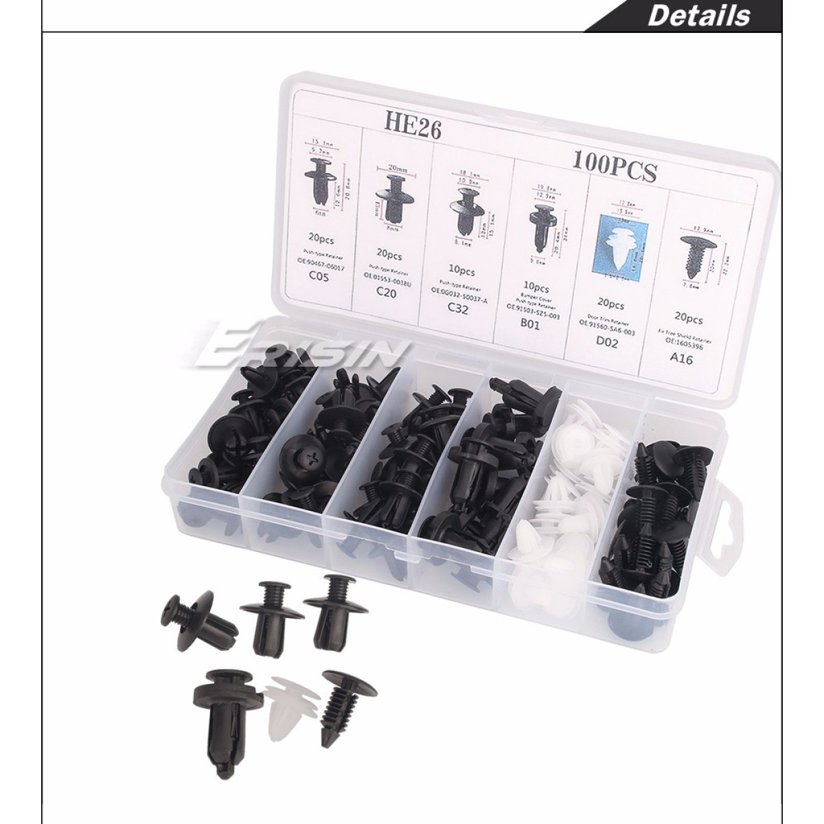 Комплект от 100бр. щипки и клипсове за автомобил.