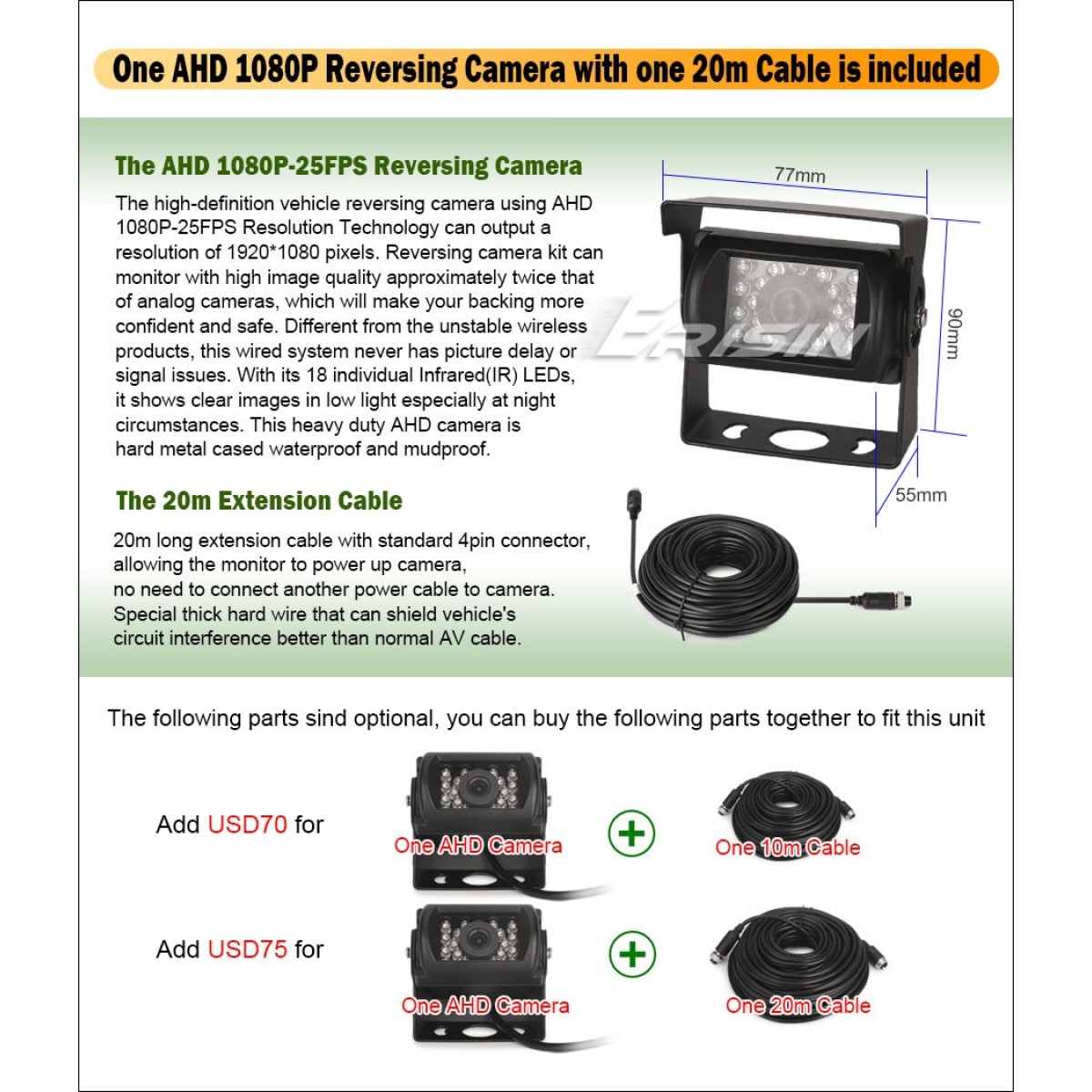 - 1 * IR AHD Reversing Camera with 4pin Connector