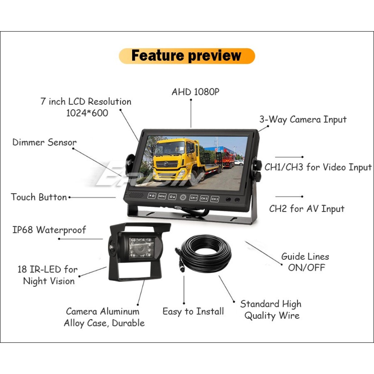 - Compatible System: NTSC & PAL & AHD (automatically)