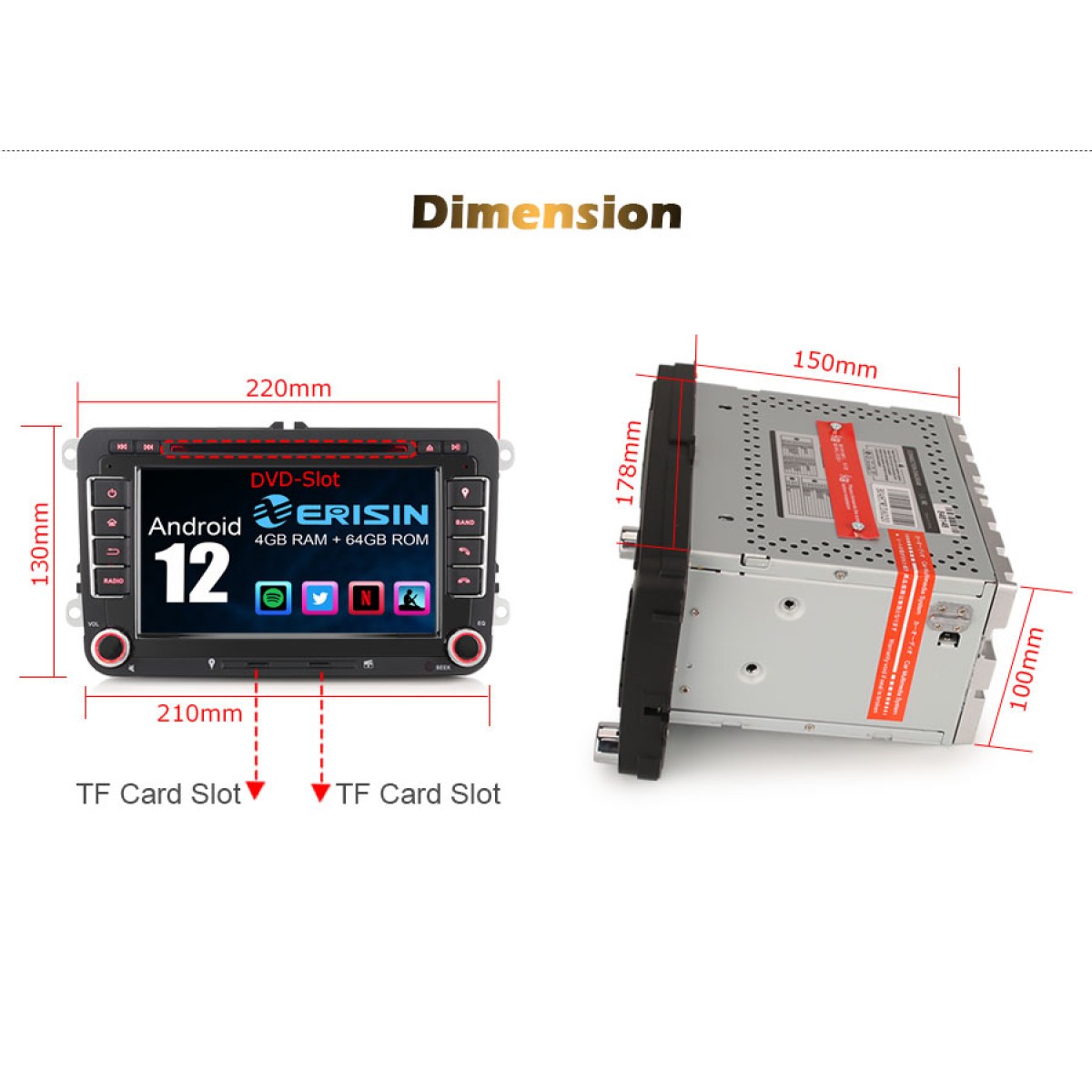 Мултимедийна система Erisin ES8548V за директно вграждане в редица автомобили VW, Skoda, Seat.